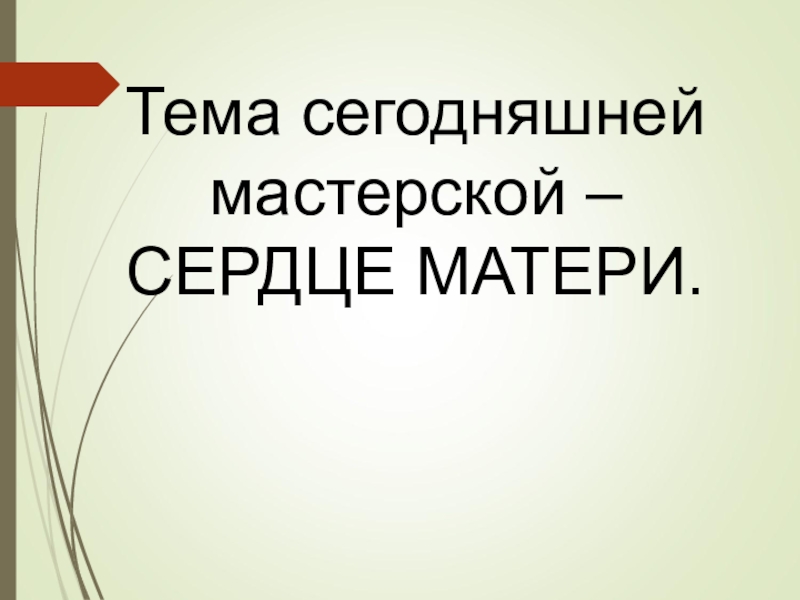 Слайд 9Тема сегодняшней мастерской – СЕРДЦЕ МАТЕРИ.