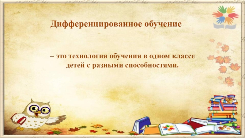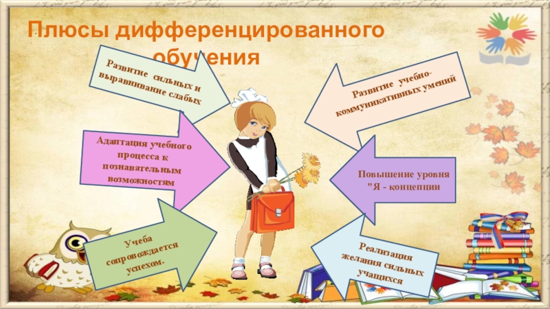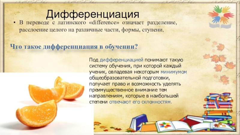 Под дифференциацией понимают такую систему обучения, при которой каждый ученик, овладевая некоторым минимумом общеобразовательной подготовки, получает право и возможность уделять преимущественное внимание тем направлениям, которые в наибольшей степени отвечают его склонностям.