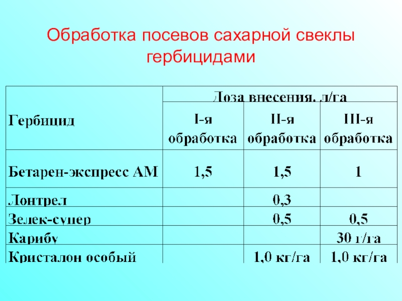 Слайд 19Обработка посевов сахарной свеклы гербицидами