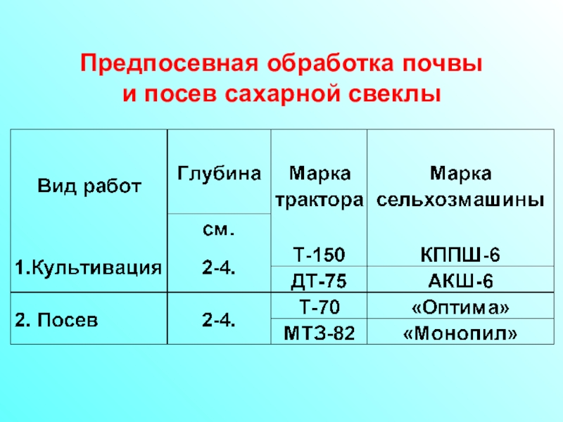 Слайд 18Предпосевная обработка почвы и посев сахарной свеклы