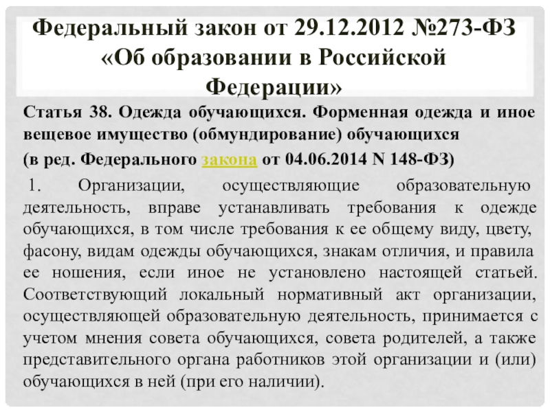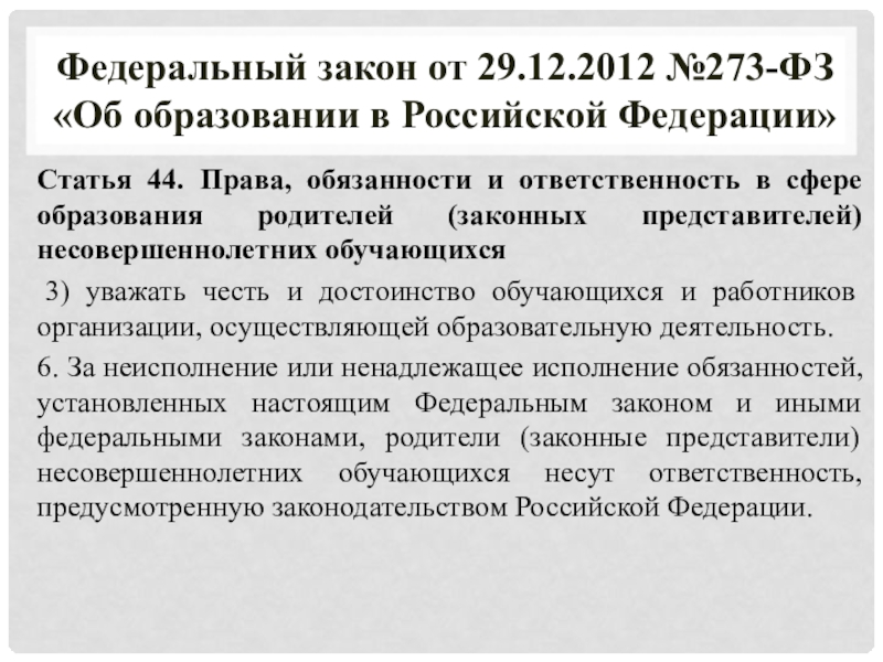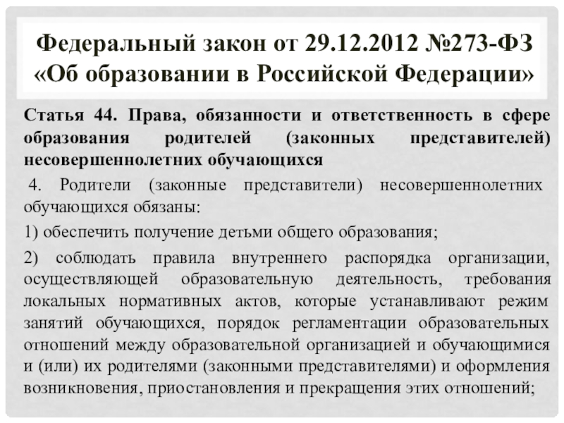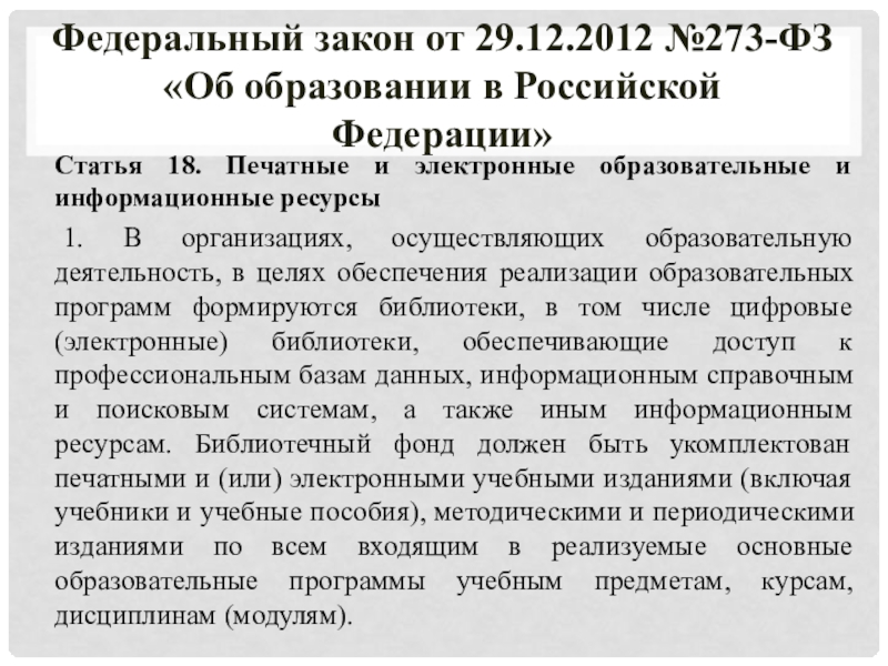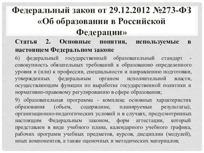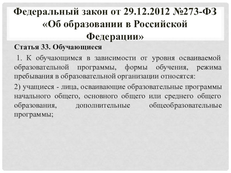 Федеральный закон от 29.12.2012 №273-ФЗ
