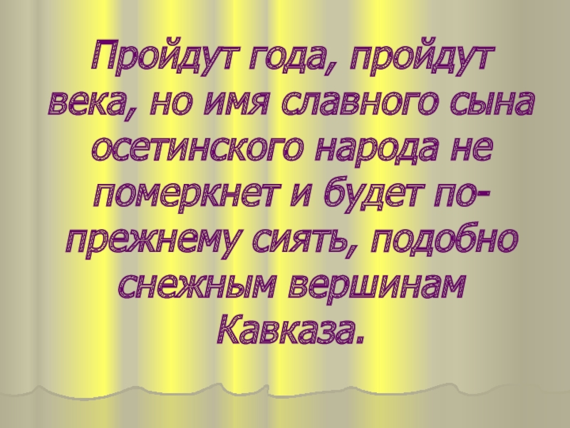 Пройдут года, пройдут века, но имя славного сына осетинского народа не померкнет и будет по-прежнему сиять, подобно