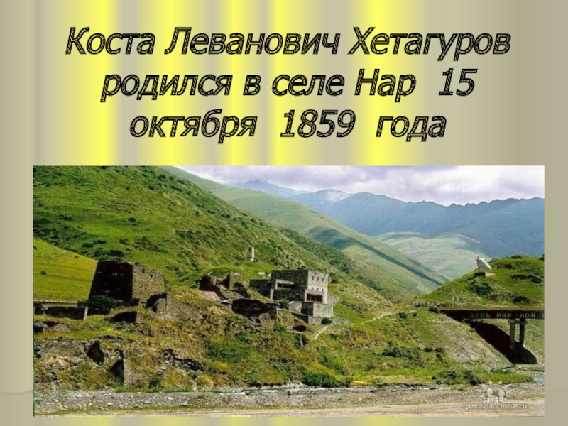 Слайд 5Коста Леванович Хетагуров родился в селе Нар 15 октября 1859 года