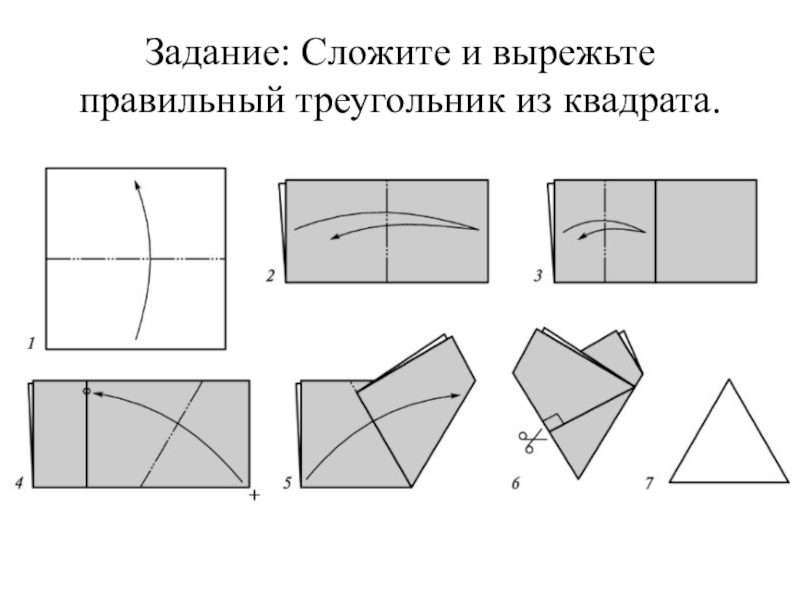 Слайд 18Задание: Сложите и вырежьте правильный треугольник из квадрата.