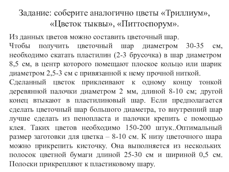 Слайд 45Задание: соберите аналогично цветы «Триллиум», «Цветок тыквы», «Питтоспорум».