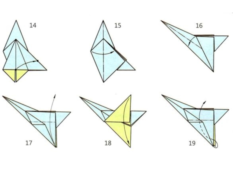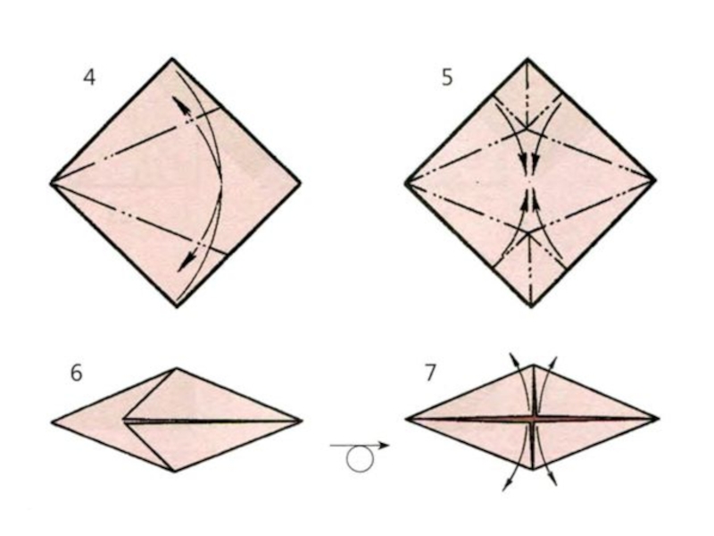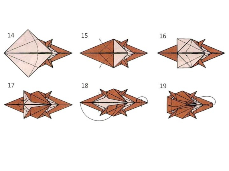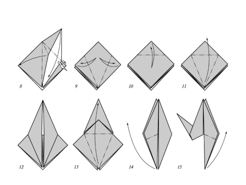 Слайд 14 Прежде чем переходить к более сложным фигурам оригами необходимо освоить складывание