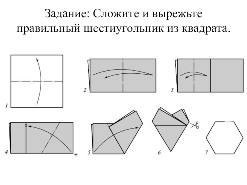 Слайд 20Задание: Сложите и вырежьте правильный шестиугольник из квадрата.