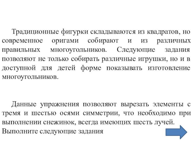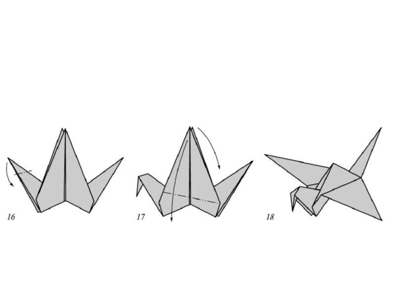 Слайд 16 Традиционные фигурки складываются из квадратов, но современное оригами собирают и из