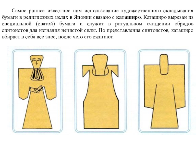 Слайд 5 Самое раннее известное нам использование художественного складывания бумаги в религиозных целях