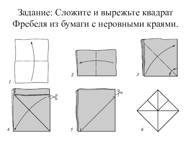 Слайд 17Задание: Сложите и вырежьте квадрат Фребеля из бумаги с неровными краями.