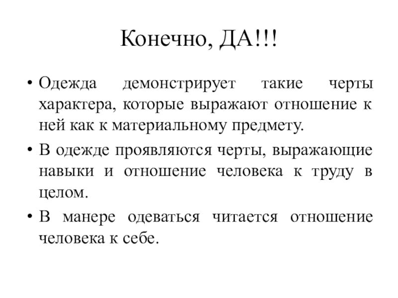 Одежда демонстрирует такие черты характера, которые выражают отношение к ней