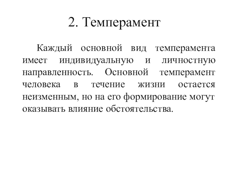 Каждый основной вид темперамента имеет индивидуальную и личностную направленность. Основной