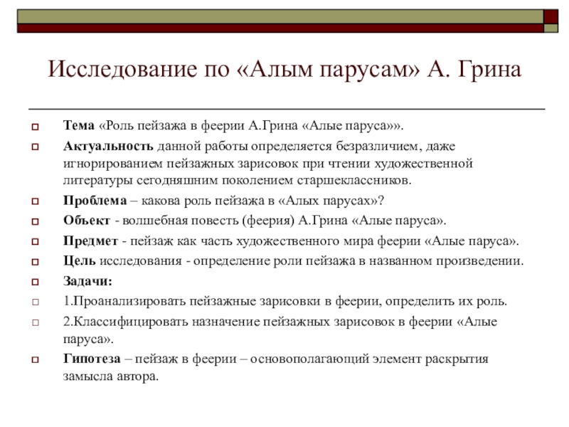 Слайд 14Исследование по «Алым парусам» А. Грина
