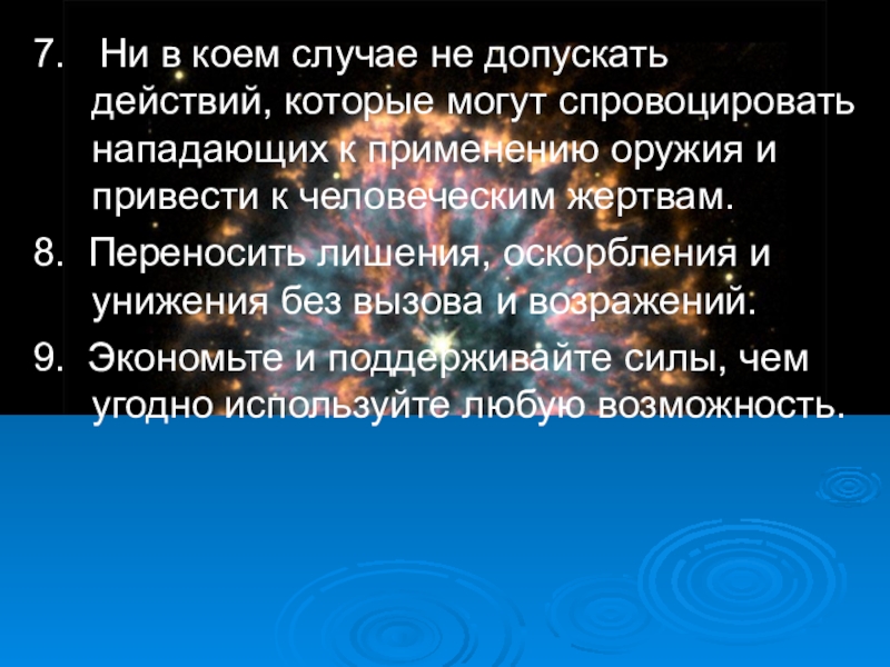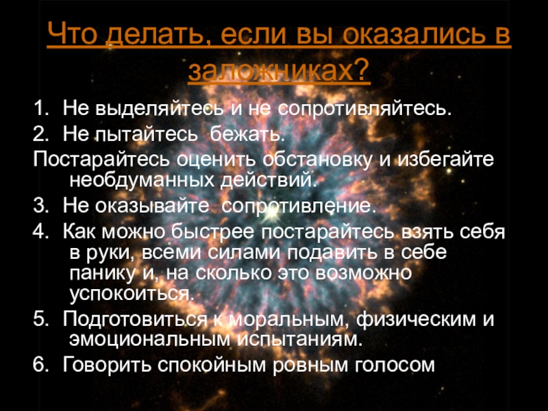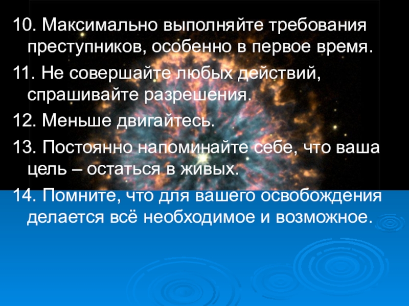 Слайд 2710. Максимально выполняйте требования преступников, особенно в первое время.