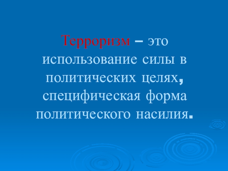 Слайд 4Терроризм – это использование силы в политических целях, специфическая форма политического