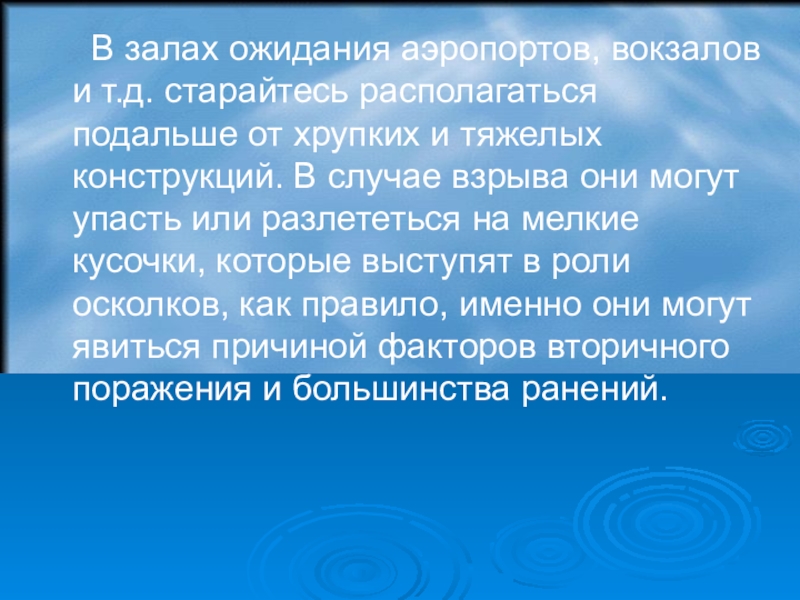Слайд 22 В залах ожидания аэропортов, вокзалов и т.д. старайтесь