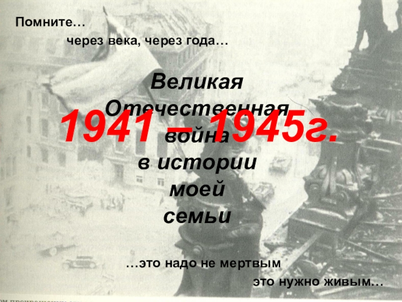 Великая Отечественная война в истории моей семьиПомните…через века, через года……это надо не мертвымэто нужно живым…1941 – 1945г.