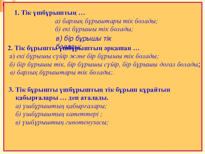 3. Тік бұрышты үшбұрыштың тік бұрыш құрайтын