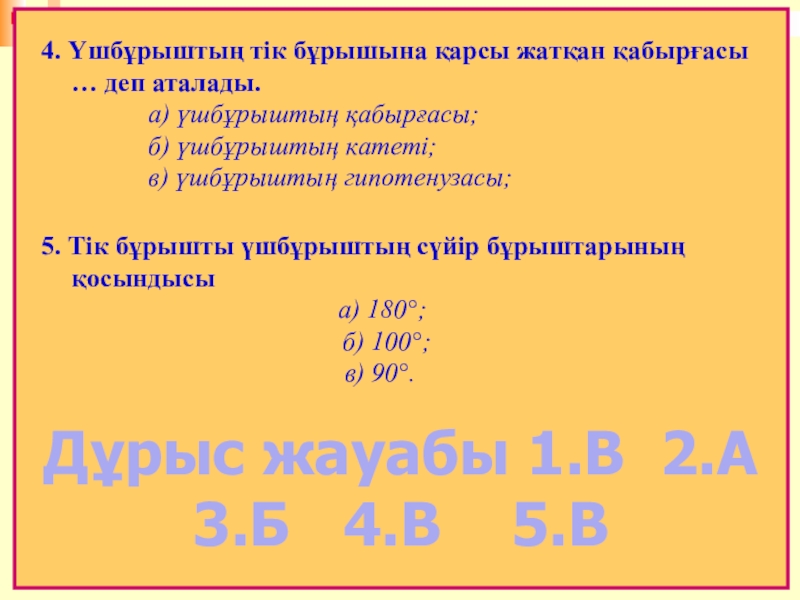 5. Тік бұрышты үшбұрыштың сүйір бұрыштарының қосындысы