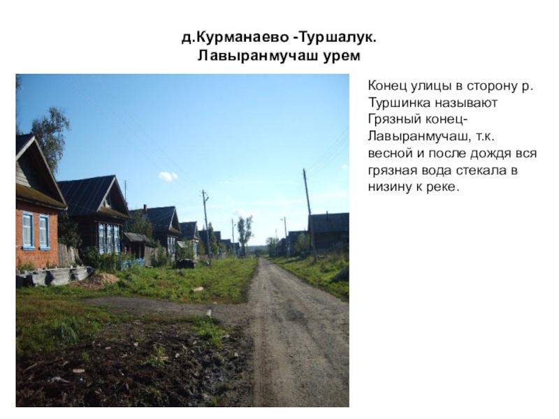 Конец улицы в сторону р.Туршинка называют Грязный конец-Лавыранмучаш, т.к.