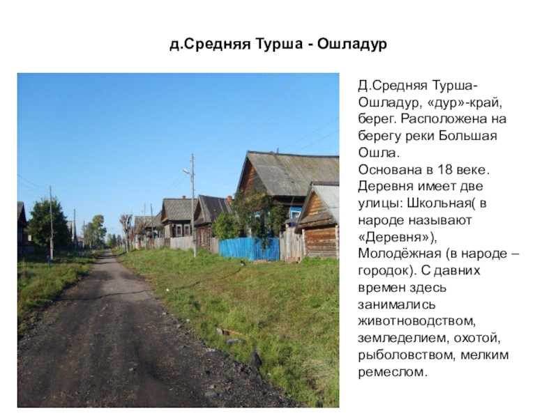 Д.Средняя Турша-Ошладур, «дур»-край, берег. Расположена на берегу реки