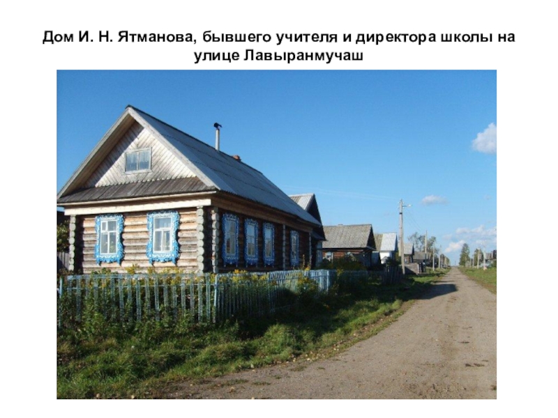 Слайд 16Дом И. Н. Ятманова, бывшего учителя и директора школы на улице