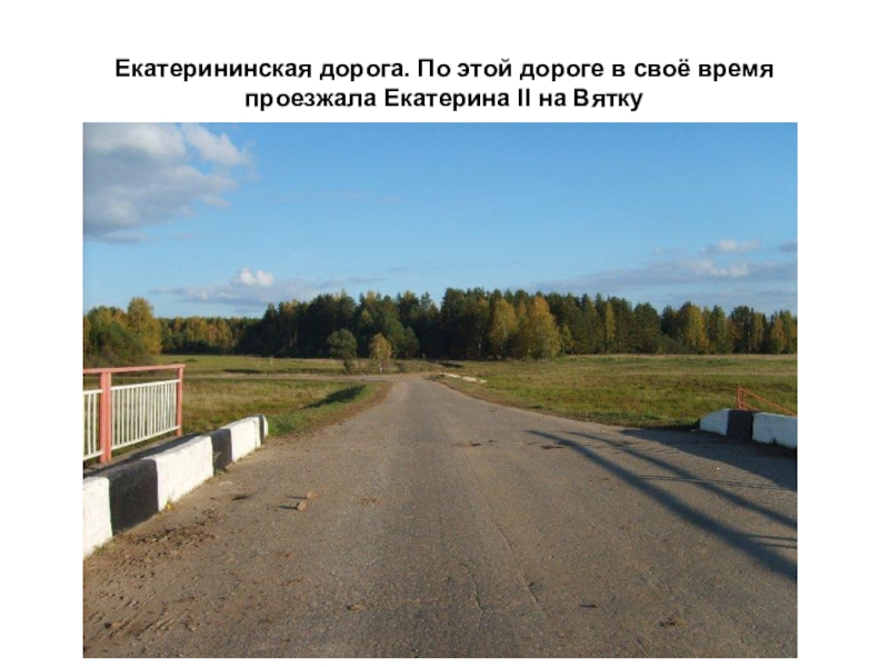 Слайд 9Екатерининская дорога. По этой дороге в своё время проезжала Екатерина II