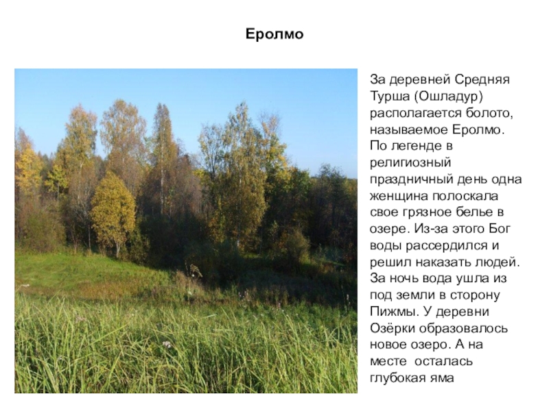 За деревней Средняя Турша (Ошладур) располагается болото, называемое Еролмо.