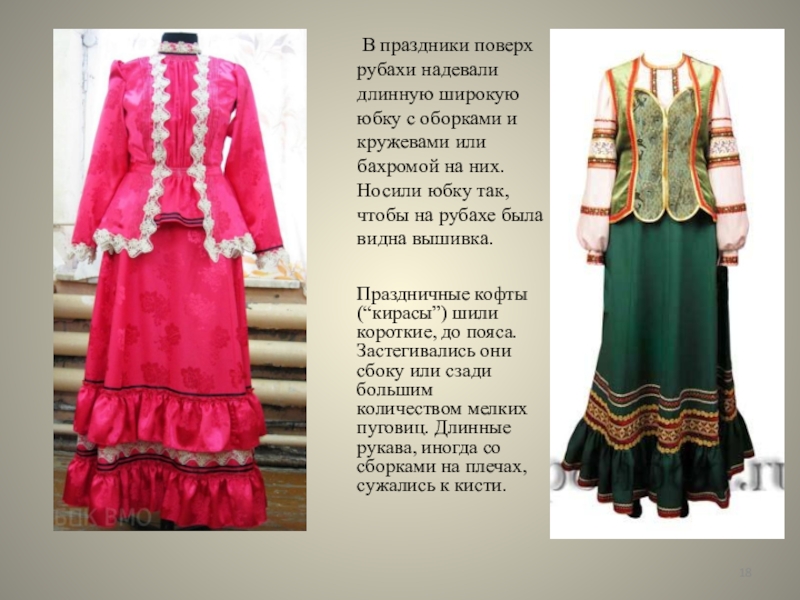 Слайд 18 В праздники поверх рубахи надевали длинную широкую юбку с оборками