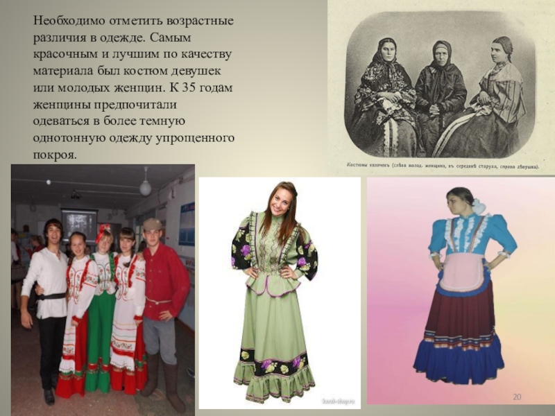 Слайд 20Необходимо отметить возрастные различия в одежде. Самым красочным и лучшим по
