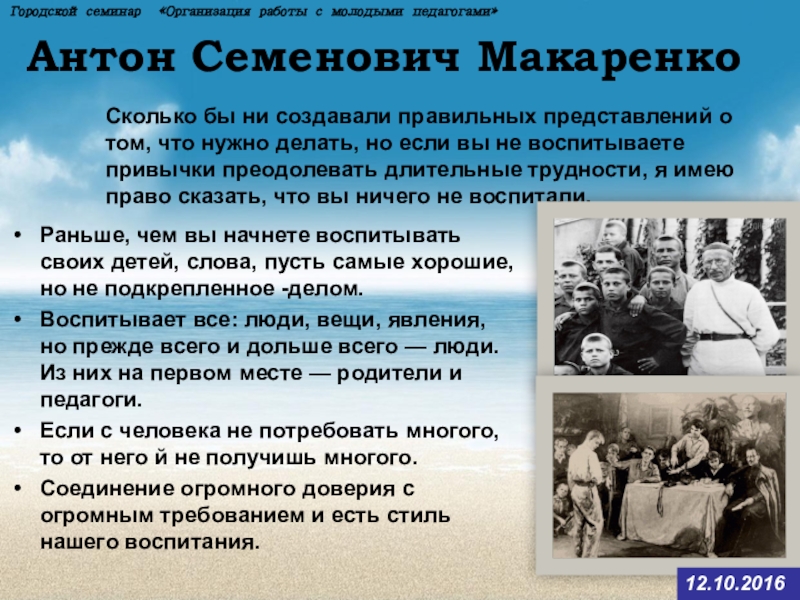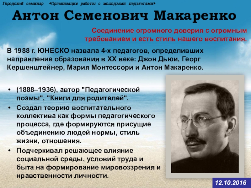 В 1988 г. ЮНЕСКО назвала 4-х педагогов, определивших направление образования в ХХ веке: Джон Дьюи, Георг Кершенштейнер, Мария Монтессори и Антон Макаренко.