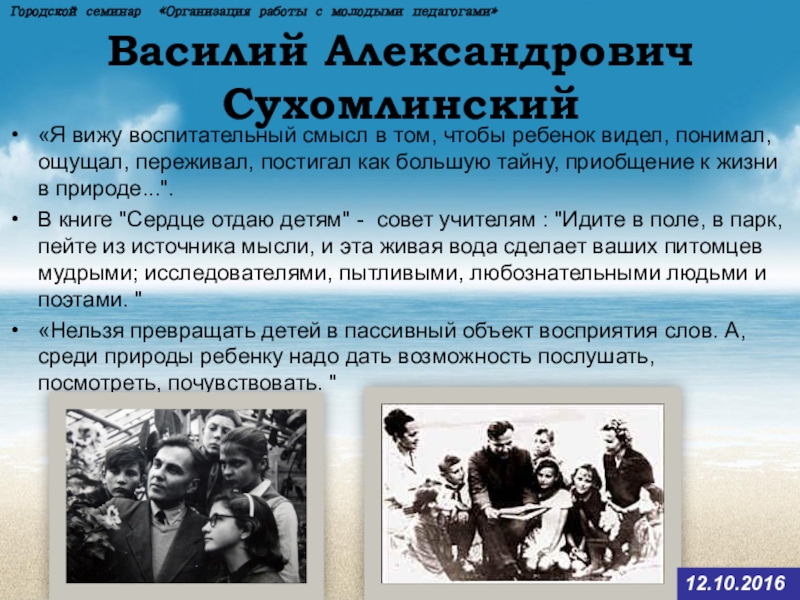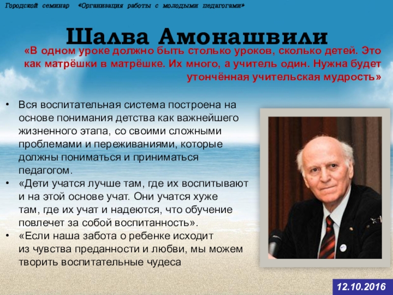 "Я понял, что воспитание и преподавание должны стать искусством, основанным на подлинном познании человека".