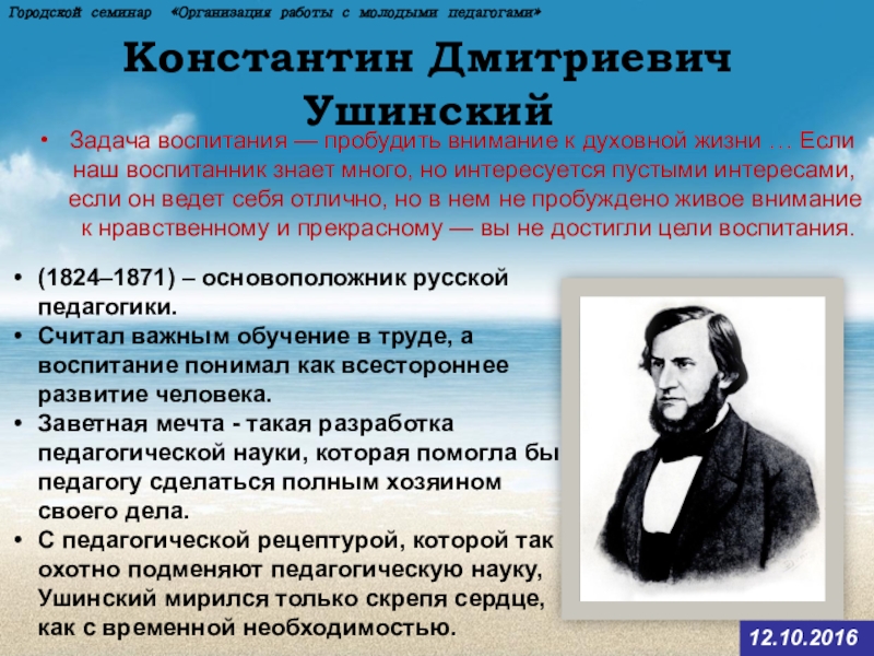 С педагогической рецептурой, которой так охотно подменяют педагогическую науку, Ушинский мирился только скрепя сердце, как с временной необходимостью.