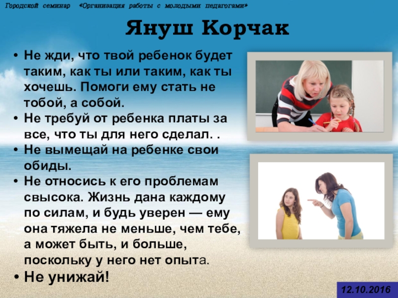 Раньше, чем вы начнете воспитывать своих детей, слова, пусть самые хорошие, но не подкрепленное -делом.