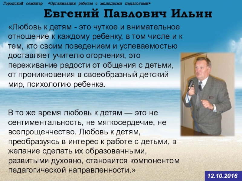 В то же время любовь к детям — это не сентиментальность, не мягкосердечие, не всепрощенчество. Любовь к детям, преобразуясь в интерес к работе с детьми, в желание сделать их образованными, развитыми духовно, становится компонентом педагогической направленности.»