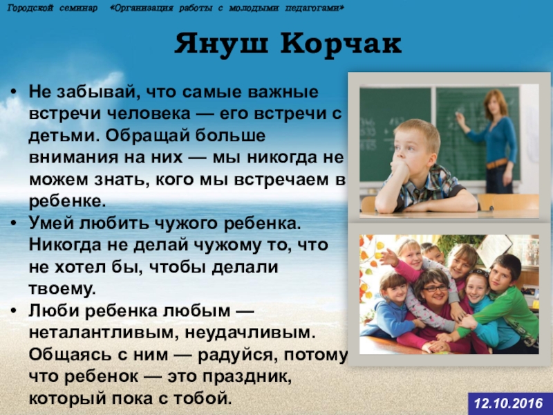 Не забывай, что самые важные встречи человека — его встречи с детьми. Обращай больше внимания на них — мы никогда не можем знать, кого мы встречаем в ребенке.