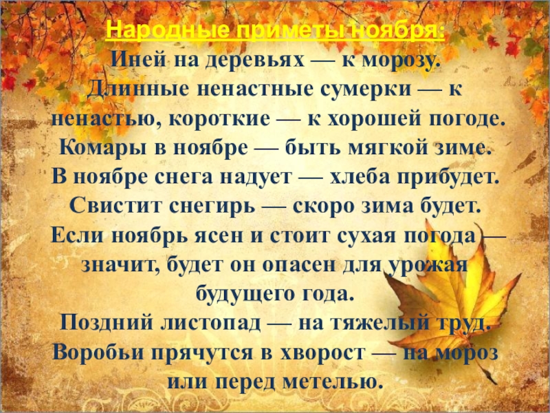 Если ноябрь ясен и стоит сухая погода — значит, будет он опасен для урожая будущего года.