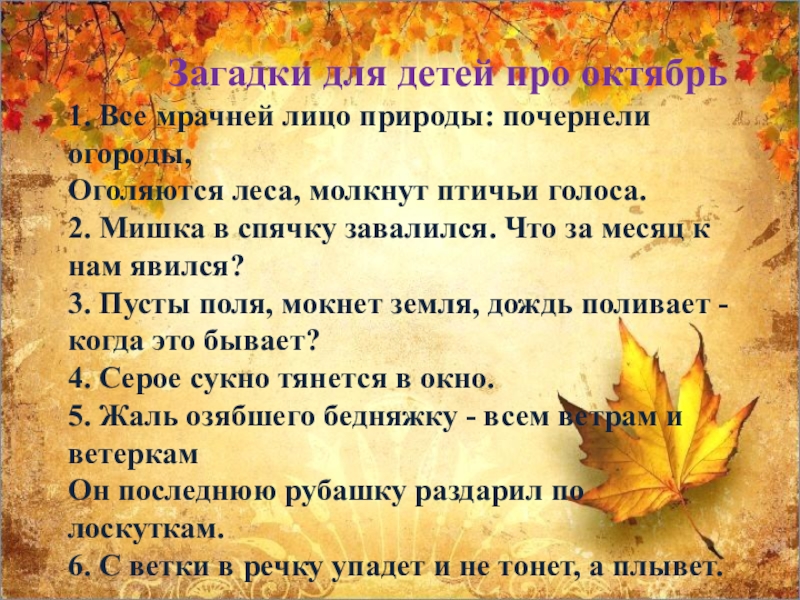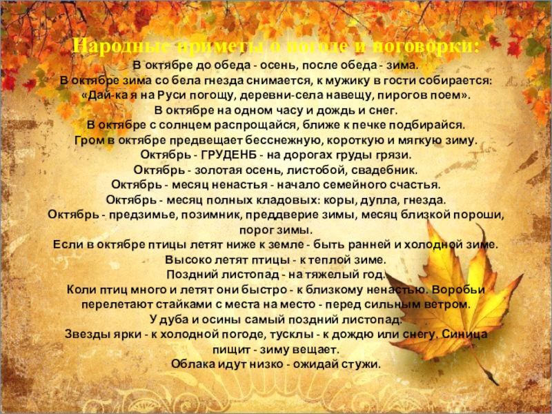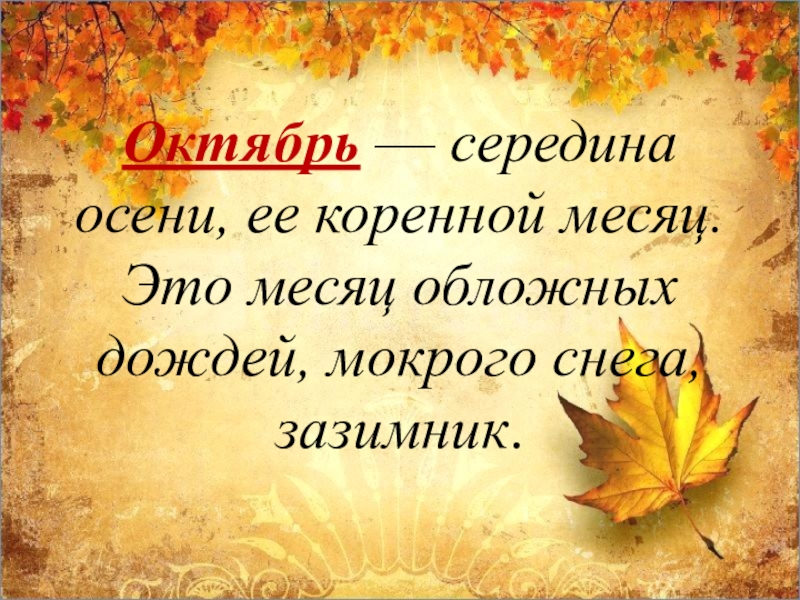 Слайд 7Октябрь — середина осени, ее коренной месяц. Это месяц обложных дождей, мокрого