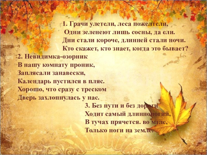 3. Пусты поля, мокнет земля, дождь поливает - когда это бывает?