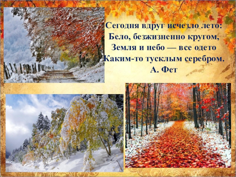 Октябрь - предзимье, позимник, преддверие зимы, месяц близкой пороши, порог зимы.
