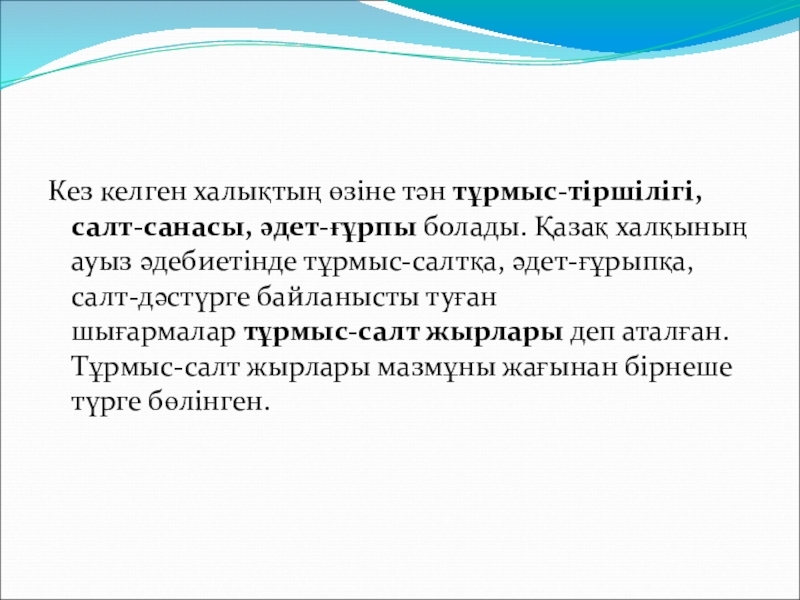 Презентация, доклад Тұрмыс-салт жырлары 5-сынып