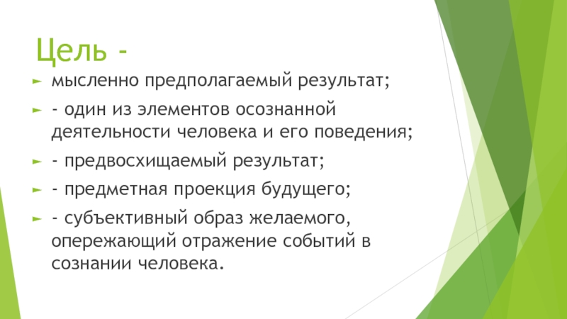 - субъективный образ желаемого, опережающий отражение событий в сознании человека.