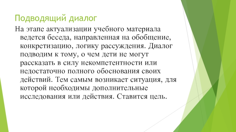 На этапе актуализации учебного материала ведется беседа, направленная на обобщение,