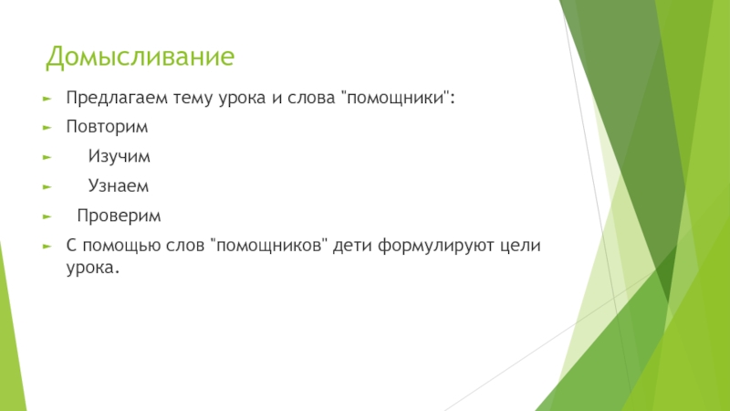 что цель может быть не одна. Теперь необходимо поставить задачи (это можно сделать через действия которые будут выполняться: читать учебник, сделать конспект, слушать доклад, составить таблицу, выписать значения слов и так далее). Задачи также записываются на доске. В конце урока необходимо вернуться к этой записи и предложить учащимся не только проанализировать, что им удалось сделать на уроке, но и увидеть, достигли ли они цели, а в зависимости от этого – формулируется домашнее задание.