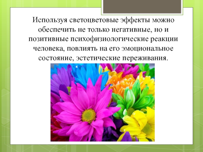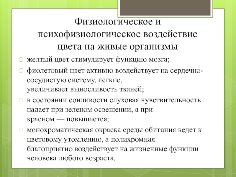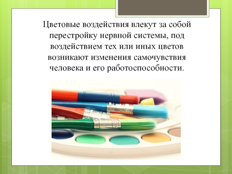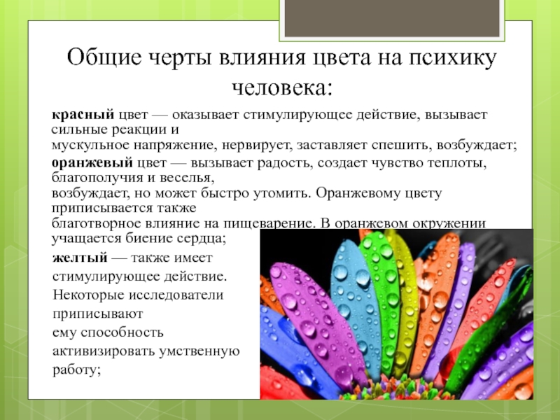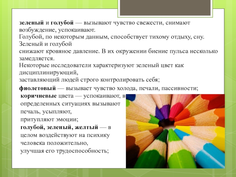 голубой, зеленый, желтый — в целом воздействуют на психику человека положительно,