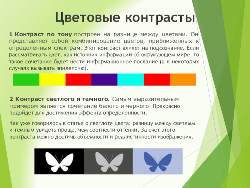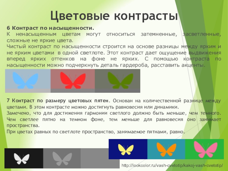 7 Контраст по размеру цветовых пятен. Основан на количественной разнице между цветами. В этом контрасте можно достигнуть равновесия или динамики.