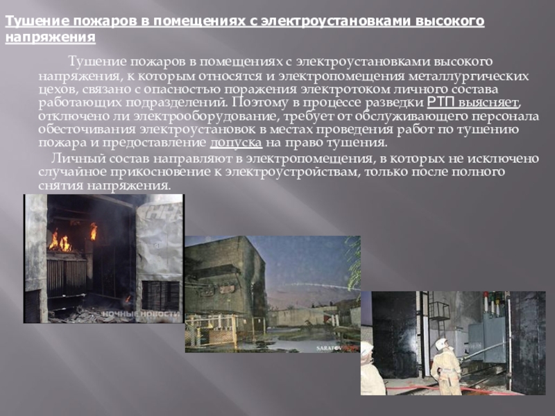 Тушение пожаров в помещениях с электроустановками высокого напряжения