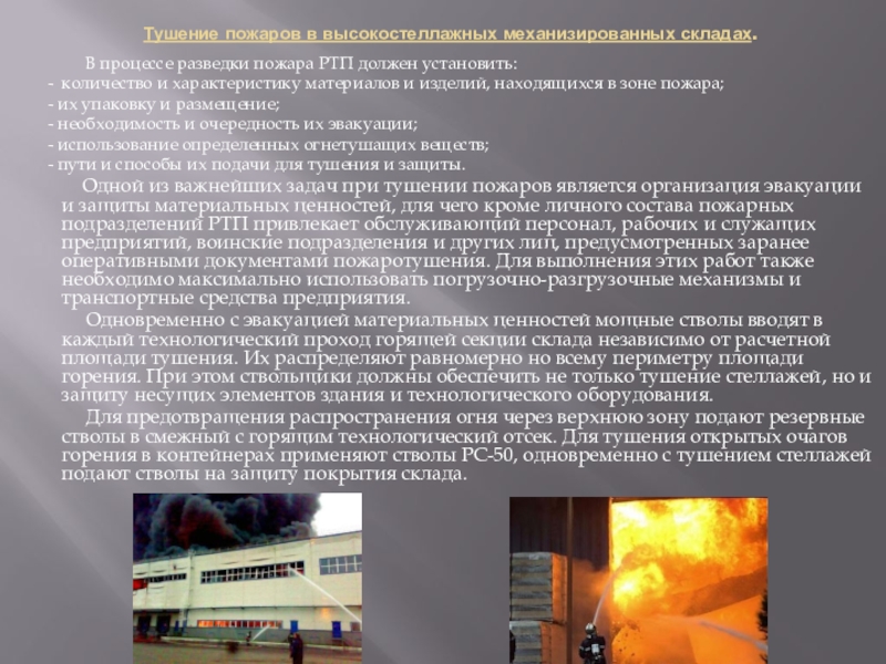 Слайд 18Тушение пожаров в высокостеллажных механизированных складах.