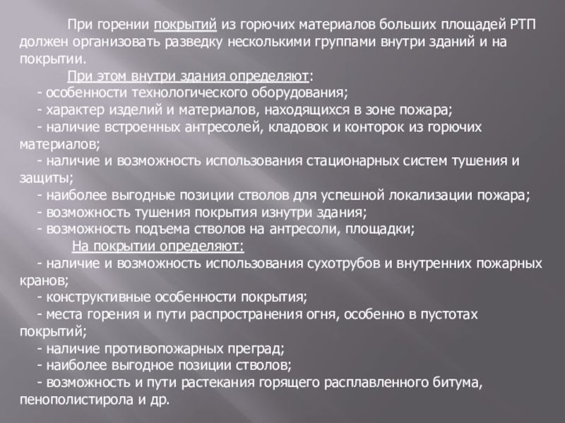 площадей РТП должен организовать разведку несколькими группами внутри зданий и на покрытии.