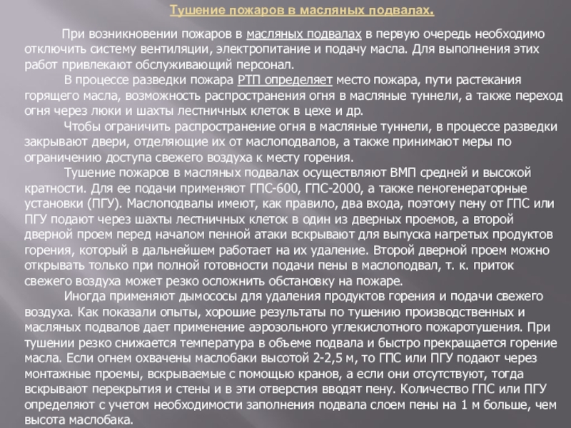Слайд 17Тушение пожаров в масляных подвалах.